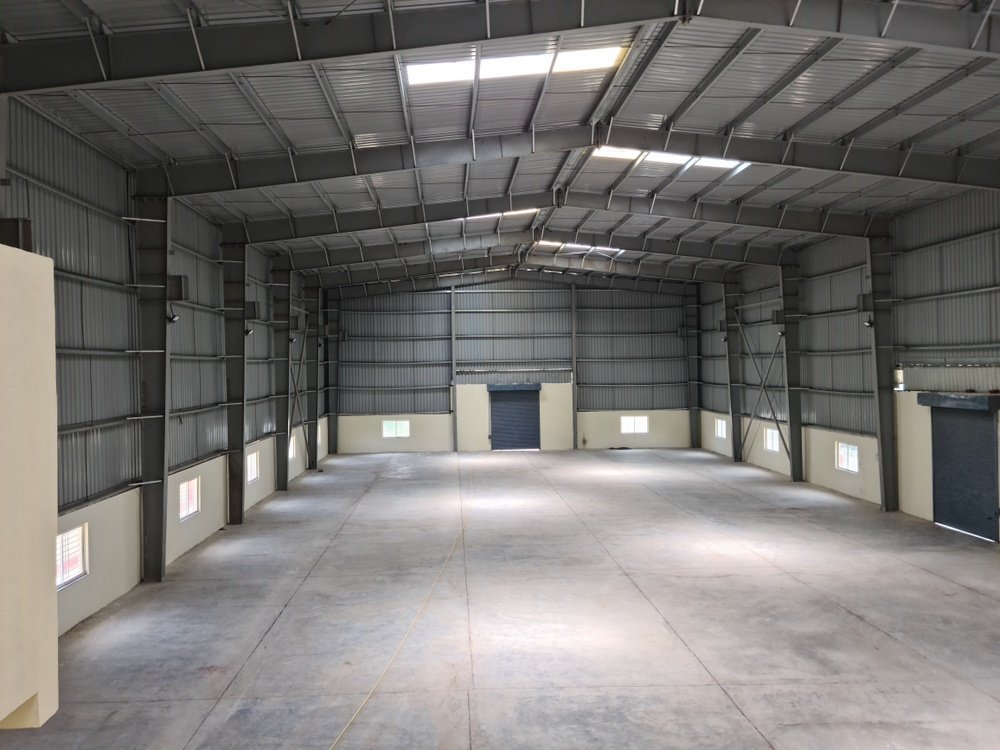 17,500 sq.ft INDUSTRIAL SHED factory building available on LEASE in CHAKAN (Pune). Fire NOC, Office Space, 5 ton capacity Tremix Flooring, 12mtr height, 10 ton crane capacity PEB Structure, open side margin, Internal concrete roads, Turbo Ventilators, MIDC water, Power, Totally fenced premise. Shop Floor:15,000sq.ft, Office:2500sq.ft READY TO MOVE IN. Rate: Rs.24/sq.ft (Industrial Shed/Factory: We have Industrial shed available for rent lease/sell from 10000 Sq.ft to 1 Lac Sq.Ft in Chakan, Bhosari, Talegaon, Ranjangaon MIDC (Pune, India). (Industrial shed on rent, shed lease chakan, shed rent chakan, factory lease factory rent in chakan, shed rent pune, factory rent in pune, Industrial shed on rent in pune, Industrial buiding in pune, Industrial building in chakan, best real estate agent in pune chakan, top property consultant in pune Chakan, best property agent in pune chakan, Industrial Shed, Warehouse, Factory shed, Industrial facility)